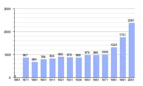 Gráfica de evolución demográfica de Monterosi entre 1861 y 2001 |