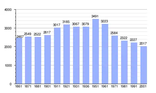 Gráfica de evolución demográfica de Monterosso Calabro entre 1861 y 2001 |