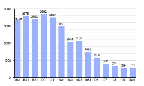 Gráfica de evolución demográfica de Monterosso Grana entre 1861 y 2001 |