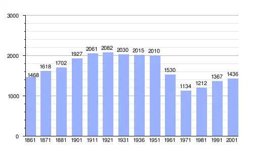 Gráfica de evolución demográfica de Montescudaio entre 1861 y 2001 |