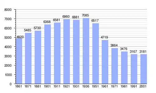 Gráfica de evolución demográfica de Montese entre 1861 y 2001 |
