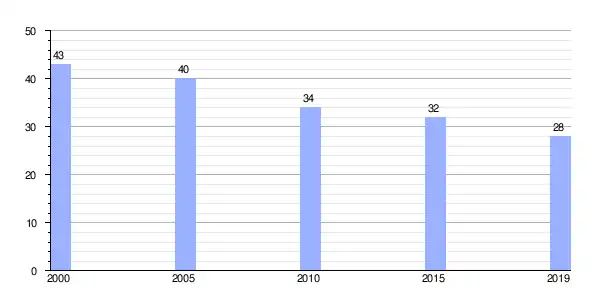Gráfica de evolución demográfica de Monteseiro (aldea) entre 2000 y 2019 |