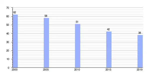 Gráfica de evolución demográfica de Monteseiro (parroquia) entre 2000 y 2019 |