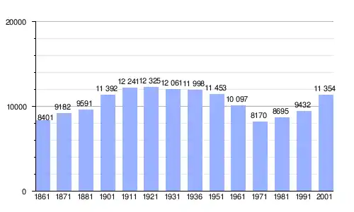 Gráfica de evolución demográfica de Montespertoli entre 1861 y 2001 |