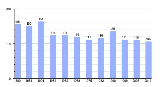 Los datos demográficos contemplados en este gráfico de la comuna de Montfort[4] se han cogido de 1800 a 1999 de la página francesa EHESS/Cassini, y los demás datos de la página del INSEE.[5]