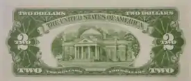 Una imagen de la fachada oeste de la casa se incluyó en el reverso de la moneda de níquel de 5 centavos de dólar, emitida entre 1938 y 2003, vuelta a utilizar en el diseño de la moneda del 2006, y también en el reverso del billete de 2 dólares impreso entre 1928 y 1966.