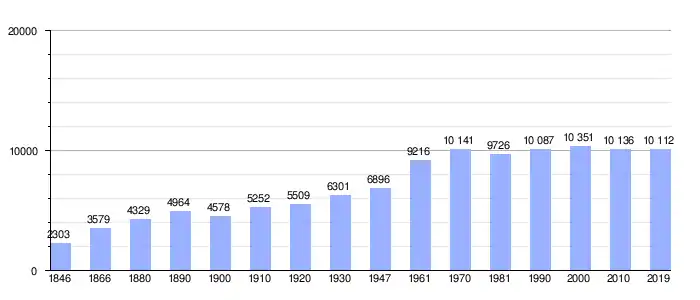 Todos los datos históricos relativos al actual municipio, el siguiente gráfico refleja su evolución demográfica, incluyendo municipios después de efectuada la fusión el 1 de enero de 1977.