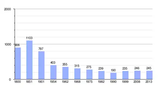 Gráfica de evolución demográfica de Montlainsia entre 1800 y 2013 |
