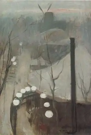 Ramón Casas pinta este cuadro durante su tercera estancia en París. Probablemente desde su vivienda, situada en el barrio de Montmartre, en la zona del Moulin de la Galette (que se ve al fondo del cuadro). En aquel momento era el barrio por excelencia de los artistas.