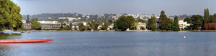 La villa de Montmorency sobre su colina vista desde el Lago de Enghien.