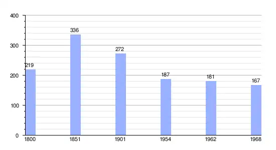 Los datos demográficos contemplados en este gráfico de la comuna de Montpinçon[4]se han cogido de 1800 a 1968 de la página francesa EHESS/Cassini.