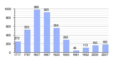 Entre los censo de 1857 y el anterior, se agregó la localidad de Farena, con su consecuente aumento de población.