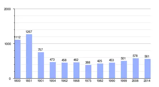Gráfica de evolución demográfica de Montsecret entre 1800 y 2014 |