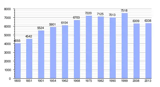 Los datos entre 1800 y 2013 son el resultado de sumar los parciales de las trescomunas que forman la nueva comuna de Montval-sur-Loir, cuyos datos se han cogido de 1800 a 1999, para las comunas de Château-du-Loir,[4]Montabon[5] y Vouvray-sur-Loir[6]de la página francesa EHESS/Cassini. Los demás datos se han cogido de la página del INSEE.[7]