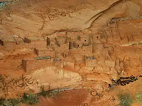 También se cree que se construyeron varias edificacioneFs en la base del acantilado. Pero como esta zona no estaba protegida por la pared del acantilado, su exposición a los elementos provocó su destrucción por la erosión. En Keet Seel, las excavaciones arqueológicas han revelado que había 25 grupos de habitaciones bajo el muro saliente, cada uno de los cuales incluía una sala de estar común, con entre uno y cuatro almacenes que rodeaban un pequeño patio. La disposición de estas viviendas reflejaba en gran medida la de las estructuras de la Pueblo III en Mesa Verde, mientras que Betatakin tenía unos 20 grupos de habitaciones.