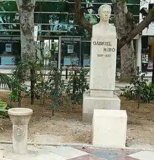 Es obra del escultor José Samper Ruiz y fue inaugurado en el año 1935. Está realizado en piedra caliza, y representa el busto del escritor alicantino Gabriel Miró, tal y como figura en la leyenda del pedestal.