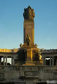 Al centro del monumento se encuentra en bronce la estatua del general, de una altura de 3,50 metros. La base central del conjunto, está hecha de mármol rosa, importado desde Rávena, Italia. En los costados de la estatua del general, aparecen seis figuras que representas las seis provincias en las que estaba dividida la isla en el período, con expresiones heroicas clásicas. Otras dos estatuas de mármol que representan la fuerza y la magnanimidad, se encuentran en la base del mismo.[1] El resto del monumento está compuesto por varias terrazas, fuentes y bancos, también de mármol. Coronando las dos esquinas del monumento se encuentran dos grupos escultóricos, uno de ellos (a la izquierda) representa, la historia y el tiempo, con la libertad al centro, en el otro (derecha), figuran el derecho y la ley, con la paz en medio.[1]