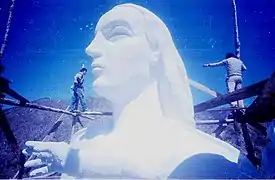 La obra fue modelada in situ, durante tres años de trabajo, afrontando el invierno con sus nieves y el verano con sus grandes calores. Con la colaboración permanente de 16 obreros, Ferrino fue levantando esta obra de ingeniería de avanzada, preparada para desafiar los fuertes embates del Zonda y los movimientos telúricos, ya que hubo que dinamitar previamente el cerro "El Tiro" para anclar la base-zapata del monumento a la roca viva de la montaña.