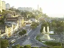 El monumento a la ciudad de Salvador, también conocido como Fuente de la Rampa del Mercado, es una escultura elaborada por el artista brasileño Mário Cravo, inaugurada el 13 de enero de 1970, que se emplaza en el barrio de Comércio, de la ciudad de Salvador, capital del estado brasileño de Bahía.[1][2] Es un monumento registrado a nivel estatal[3][4] y, al estar situado en la Plaza Vizconde de Cairu, está próximo a otras estructuras patrimoniales icónicas como el elevador Lacerda y el Mercado Modelo,[1] así como de la sede del 2.º Distrito Naval de la Marina de Brasil y del Terminal Turístico Náutico de Bahía. Se ha convertido en una de las principales postales de la ciudad de Salvador.[5][6][7]