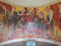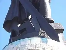 ![]() La escultura principal: El soldado soviético sosteniendo a la niña alemana, y con la esvástica destruida bajo su espada.