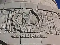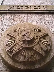 - Detalle: Símbolo soviético del día de la victoria esculpido en piedra.