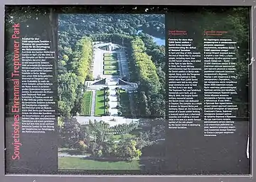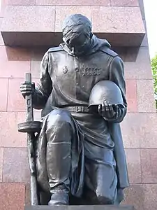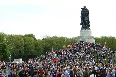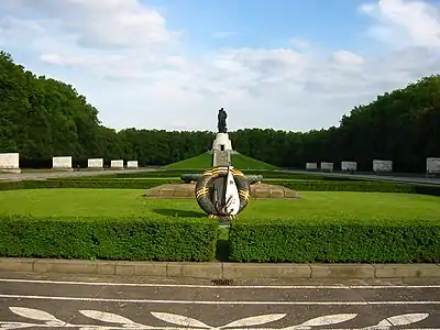 Tras el final de la Segunda Guerra Mundial, el Ejército Rojo erigió cuatro monumentos de guerra en la ciudad de Berlín.[3] En conmemoración a los soldados muertos, especialmente los aproximadamente 80.000 soldados soviéticos que cayeron durante la batalla de Berlín.[6] Estos no solo fueron monumentos dedicados a la victoria soviética sobre Alemania, sino también cementerios militares y, por lo tanto, sepulcros de soldados soviéticos en Alemania. Entre los monumentos conmemorativo soviéticos están Schönholzer Heide (brezal de Schönholz) y el que se encuentra en Tiergarten, cercano al edificio del Reichstag.