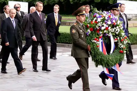 - El presidente Vladímir Putin lleva una ofrenda floral al monumento.