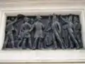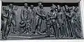 El primero de los bajorrelieves es el Desembarco de Mindelo, donde vemos a Pedro IV dar la bandera a Tomás de Melo Breyner.