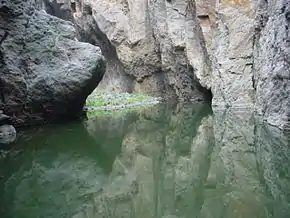 - "las paredes del cañón pueden alcanzar alturas entre 120 a 150 metros."
