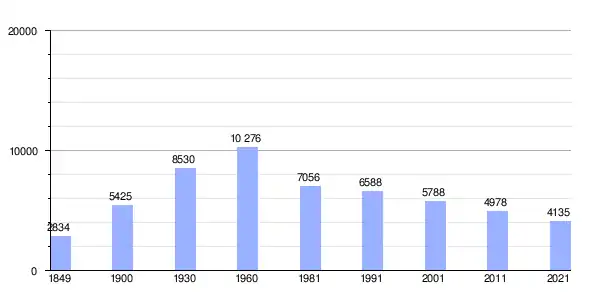 Gráfica de evolución demográfica de Mora entre 1849 y 2021 |