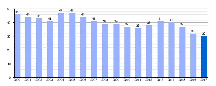 Gráfica de evolución demográfica de Moral de Valcarce entre 2000 y 2017 |