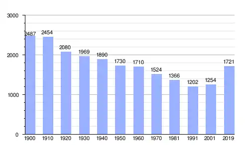 Gráfica de evolución demográfica de Moraleja del Vino entre 1900 y 2019 |