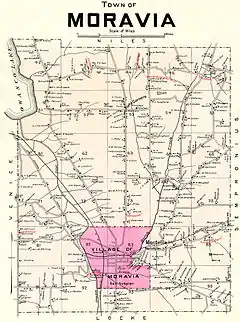 Moravia es un pueblo ubicado en el condado de Cayuga en el estado estadounidense de Nueva York. En el año 2000 tenía una población de 4.040 habitantes y una densidad poblacional de 53.8 personas por km².