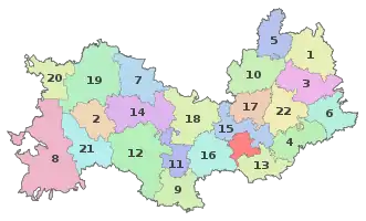 Desde 1994 la República de Mordovia se divide en 22 distritos o raiones y tres ciudades de régimen republicano (Saransk, Ruzáyevka y Kovýlkino). Por lo general, el nombre del distrito hace referencia al nombre de la capital de dicho distrito.