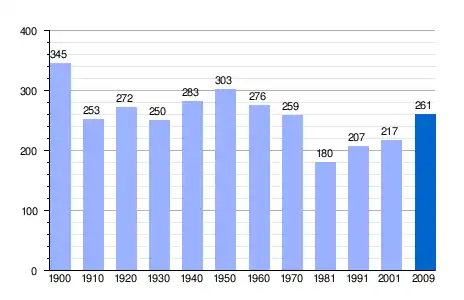 Población de derecho (1900-1991) o población residente (2001) según los censos de población del INE. Población según el padrón municipal de 2009 del INE. |