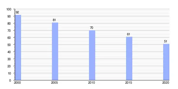Gráfica de evolución demográfica de Moredo (parroquia) entre 2000 y 2020 |