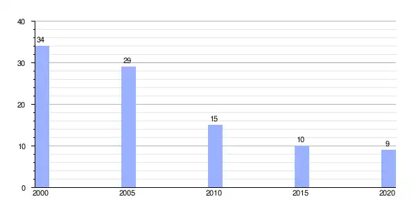 Gráfica de evolución demográfica de Moredo (aldea) entre 2000 y 2020 |