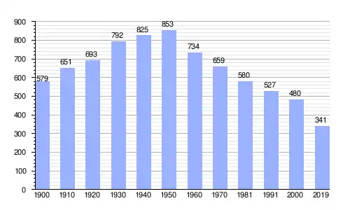 Gráfica de evolución demográfica de Moreruela de los Infanzones entre 1900 y 2019 |