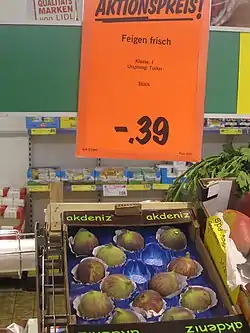 ![]() Higos 'Morgüz' en puesto de venta en Alemania. | ||