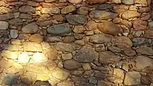 Con ella se construían los lienzos exteriores de las viviendas. La roca más utilizada para este fin era la cuarcita, una roca dura, que adopta tonos amarillos o rojizos. Eran piedras irregulares de tamaño y formas. No se labraban . Otra roca era la pizarra, que se utilizaba para las cubiertas de las viviendas. Las losas empleadas para este fin mostraban contornos, grosores y dimensiones irregulares, lo que obligaba a acomodarlas sobre las cubiertas hasta lograr un acabado uniforme carente de espacios vacíos.