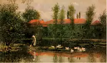 Los primeros encargos de la empresa — vitrales y esquemas decorativos para la iglesia de San Miguel, Brighton, la iglesia de Todos los Santos, Selsley y la capilla de Jesús, Cambridge — provinieron del arquitecto GF Bodley a principios de la década de 1860. [9] Después de esto, dos importantes encargos seculares ayudaron a establecer la reputación de la firma a fines de la década de 1860: un proyecto real en el Palacio de St. James y el "comedor verde" en el Museo de South Kensington (ahora Victoria and Albert ) de 1867. El comedor verde (conservado como Sala Morris en el V&A) contaba con vidrieras y paneles de figuras de Burne-Jones, paneles con ramas de frutas y flores de Morris, y ramas de olivo y un friso de Philip Webb. El encargo de St. James comprendía esquemas decorativos para la Armería y la Sala de Tapices, e incluía paneles de motivos florales estilizados pintados en techos, cornisas, netos, ventanas y puertas. [10]