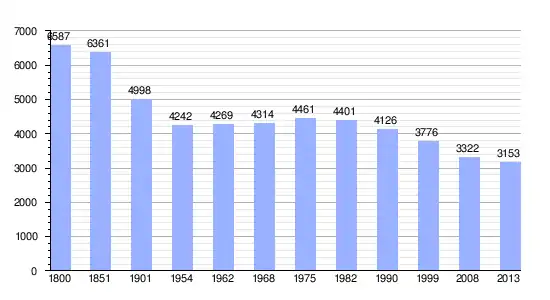 Gráfica de evolución demográfica de Mortain-Bocage entre 1800 y 2013 |
