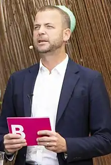 ![]() Morten Østergaard, dando un discurso como líder del partido en junio de 2020. | ||