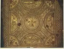 El panel en la habitación más grande es de 5,18 m por 4,57 m. Un círculo central rodea un retrato en busto de un hombre con pallium blanco en pie ante un símbolo Chi Rho cristiano flanqueado por dos granadas. Se le identifica normalmente como Cristo, aunque se ha sugerido también que podría ser el emperador Constantino.[1] Hay bastante evidencia que lleva a ientificarlo como Cristo, no siendo la menor la ausencia de cualquier insignia o elemento identificador que apunte a algún emperador en concreto. A cada lado de esto hay cuatro lunetos, cada uno presentando un bosque convencional y viñetas de caza, en su mayoría de un perro y un ciervo. En las esquinas hay cuatro cuartos de círculo conteniendo bustos de retrato, bien representando los vientos o las estaciones.