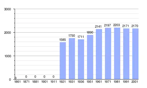 Gráfica de evolución demográfica de Moso in Passiria entre 1861 y 2001 |