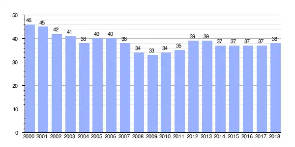 Gráfica de evolución demográfica de Mosquete entre 2000 y 2018 |