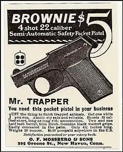 ![]() Cartel publicitario de la Mossberg Brownie, donde es erróneamente descrita como "semiautomática". | ||