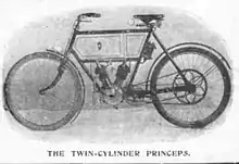 En noviembre de 1902 la Princeps AutoCar Co (UK) anunciaba una motocicleta con motor V2,[4] y en 1903 varias compañías produjeron motores V2, incluyendo el XL-ALL de 90º[5] (fabricado por Eclipse Motor & Cycle Co en el Reino Unido). También en 1903, Glenn Curtiss en Estados Unidos, y NSU en Alemania comenzaron a producir motores V2 para usarlos en sus respectivas motocicletas.[6] Peugeot, que había usado motores Daimler construidos por Panhard en sus primeros automóviles,[3][7] hizo también sus propios motores V2 a principios del siglo XX. Una motocicleta Norton con motor Peugeot V2 ganó la primera carrera de motocicletas de la isla de Man (el TT 'Tourist Trophy') en la categoría de dos cilindros en 1907.[7]