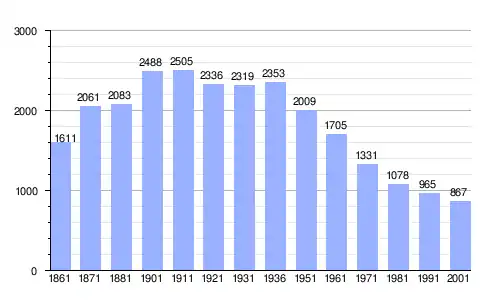 Gráfica de evolución demográfica de Motta Camastra entre 1861 y 2001 |