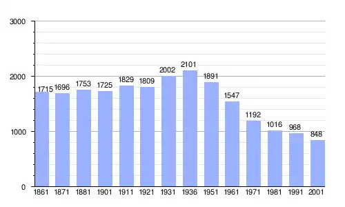 Gráfica de evolución demográfica de Motta Santa Lucia entre 1861 y 2001 |